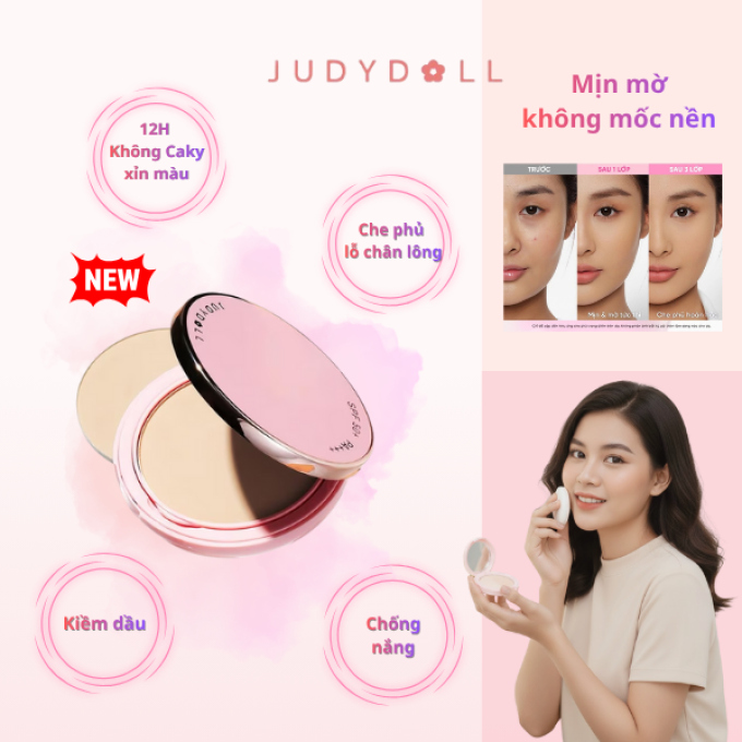 Phấn Nền Phấn Phủ Dạng Nén JUDYDOLL Peach Skin Matte 2-Way Cake Khô Thoáng Mịn Da