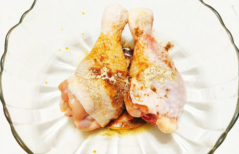 + Trước khi ướp gia vị, bạn cũng có thể phết lên trên bề mặt đùi gà lớp mỏng nước cốt chanh để thành phẩm có được màu vàng đẹp mắt hơn.
