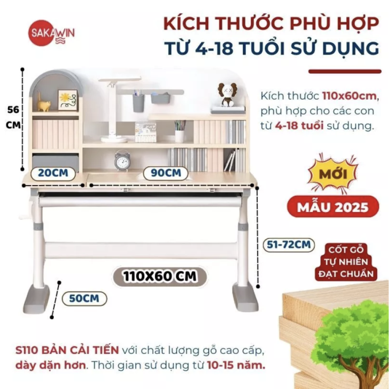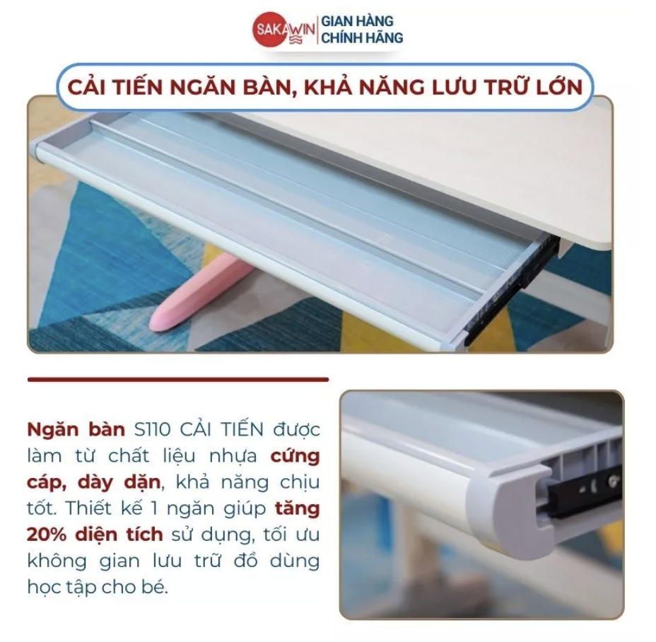 – Linh hoạt trong việc thay đổi chiều cao mặt bàn giúp bé yêu có nhiều sự lựa chọn trong việc ngồi đúng tư thế, có thể chủ động thay đổi chiều cao mặt bàn tương ứng với mình. Hơn nữa SAKAWIN S110 mang lại cảm giác việc thay đổi này dễ hơn bất cứ bàn học nào vì được cải tiến trong công nghệ.