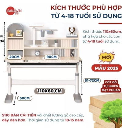 – Linh hoạt trong việc thay đổi chiều cao mặt bàn giúp bé yêu có nhiều sự lựa chọn trong việc ngồi đúng tư thế, có thể chủ động thay đổi chiều cao mặt bàn tương ứng với mình. Hơn nữa SAKAWIN S110 mang lại cảm giác việc thay đổi này dễ hơn bất cứ bàn học nào vì được cải tiến trong công nghệ.