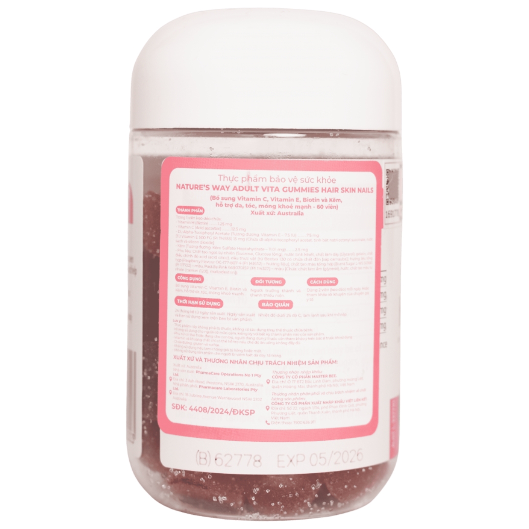 Adult Vita Gummies Hair Skin Nails – Bổ sung Vitamin C, E, Biotin và kẽm hỗ trợ da, tóc móng khỏe mạnh