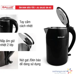 Ấm đun nước siêu tốc 1.8L Galuz Gk-02 với thiết kế sang trọng, tinh tế. Thân ấm 2 lớp liền khối kết hợp inox 304 và nhựa cao cấp. Dung tích lớn 1.8L cùng công suất 1500W khả năng đun sôi nhanh chóng. Cung cấp đủ nước sôi cho gia đình nấu mì, pha trà, cà phê, pha sữa … mọi lúc mọi nơi.