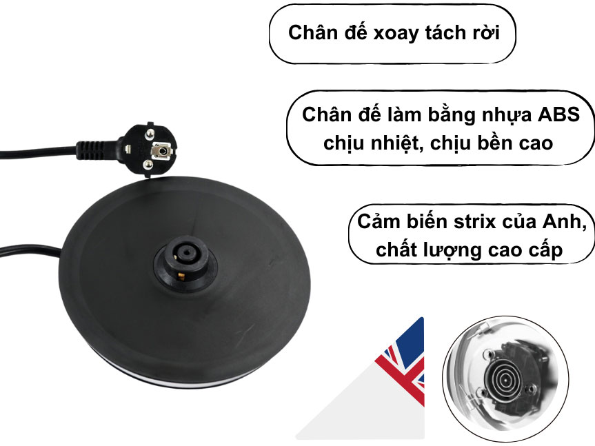 Gkoch HB-K102A được trang bị chế độ tự động ngắt điện khi nước đạt đến nhiệt độ sôi hoặc khi cạn nước, đảm bảo an toàn tuyệt đối và tránh nguy cơ cháy nổ. Đây là tính năng quan trọng giúp người dùng an tâm hơn khi sử dụng.