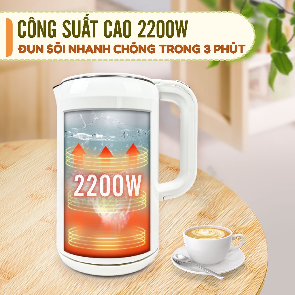 Hệ thống an toàn 2 cấp độ: tự động ngắt khi nước sôi, bảo vệ đun khô/không có nước.