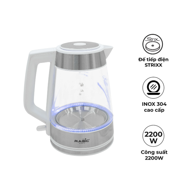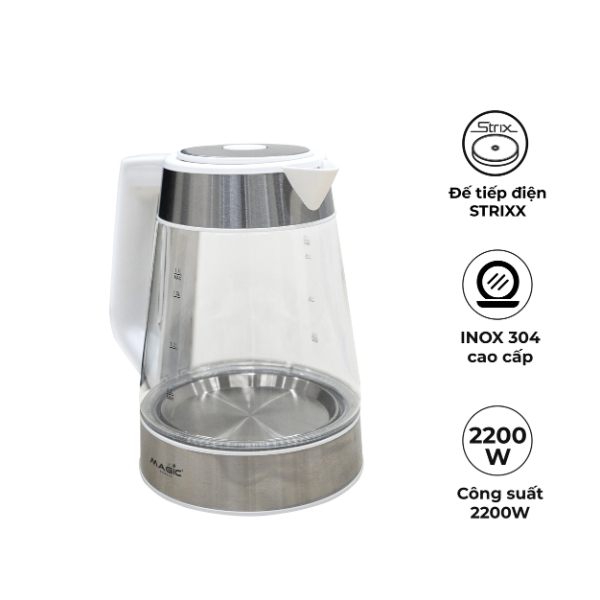 Sử dụng công suất 2200W, ấm giúp đun nước sôi nhanh hơn nhiều so với các loại ấm công suất thấp, tiết kiệm thời gian cho người dùng, đặc biệt là vào buổi sáng hoặc những lúc cần nước nóng gấp. Mâm nhiệt chất lượng cao cho khả năng truyền nhiệt tốt, hoạt động bền bỉ và ít hao điện.