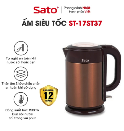 Ấm Siêu Tốc SATO 17ST37(N) 1.8L mang đến sự kết hợp hoàn hảo giữa thiết kế sang trọng, công nghệ Nhật Bản tiên tiến và độ bền vượt trội. Với dung tích 1.8 lít, công suất 1500W, và các tính năng an toàn thông minh, sản phẩm này không chỉ giúp bạn đun sôi nước nhanh chóng mà còn đảm bảo an toàn tuyệt đối. Được sản xuất tại Việt Nam với tiêu chuẩn chất lượng cao, SATO 17ST37(N) là lựa chọn lý tưởng cho gia đình, văn phòng, hay phòng trọ.![]()