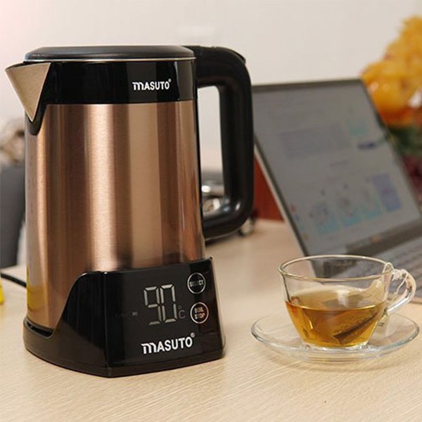 Ấm siêu tốc thông minh 2 lớp Masuto được thiết kế với dáng đứng thon gọn, màu sắc hài hòa phù hợp với không gian bếp hiện đại trong nhà bạn.Dây cắm điện có thể cuộn giấu dưới đáy tăng tính thẩm mỹ cho căn bếp nhà bạn.