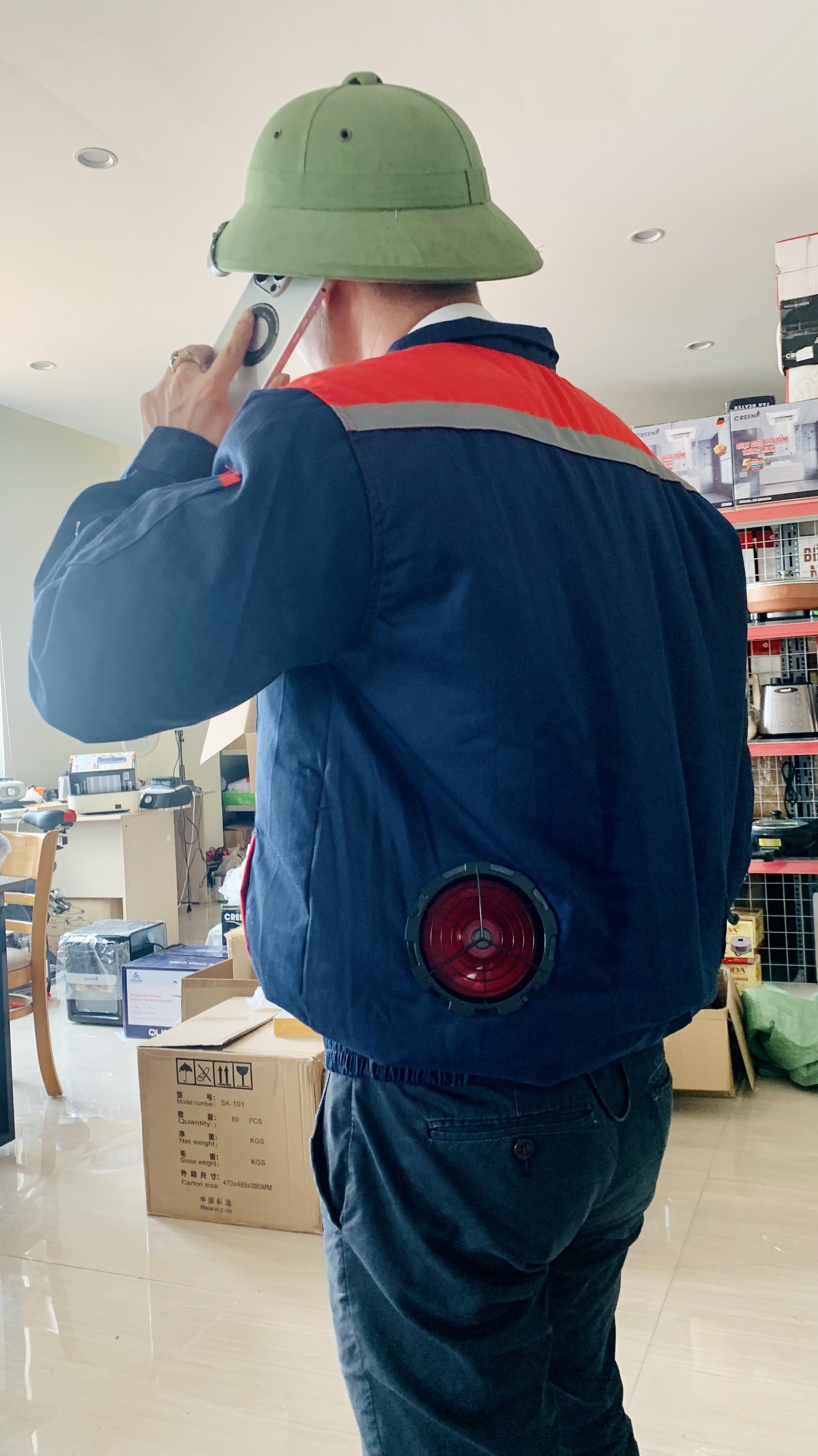 Áo quạt điều hòa CREEN thay thế cho chiếc áo chống nắng, áo bảo hộ lao động. Thiết kế với 2 quạt thông gió giúp cải thiện đáng kể khả năng thoát mồ hôi, mang lại sự thông thoáng cho người sử dụng