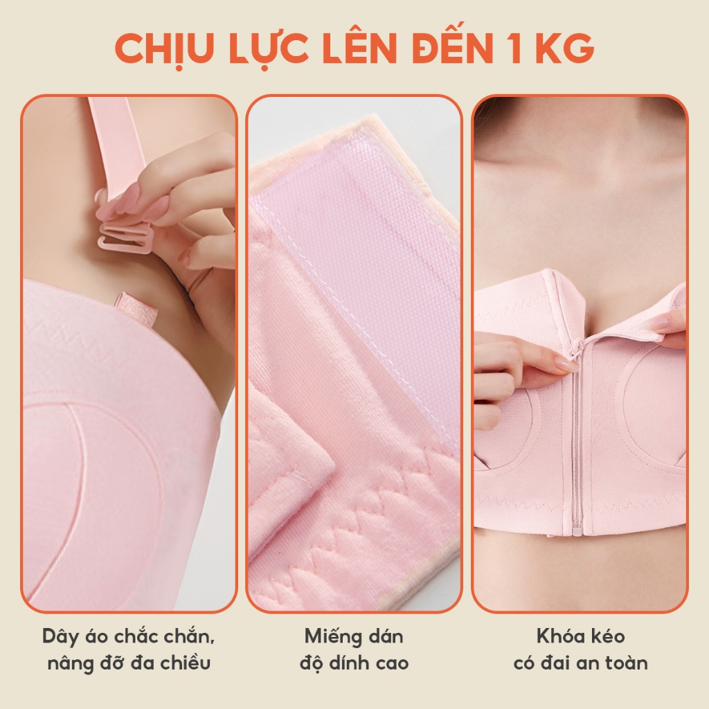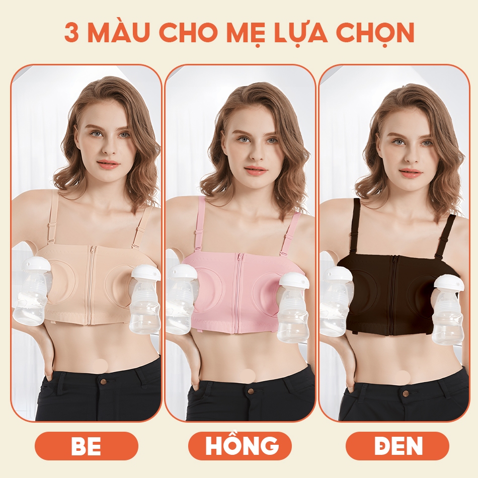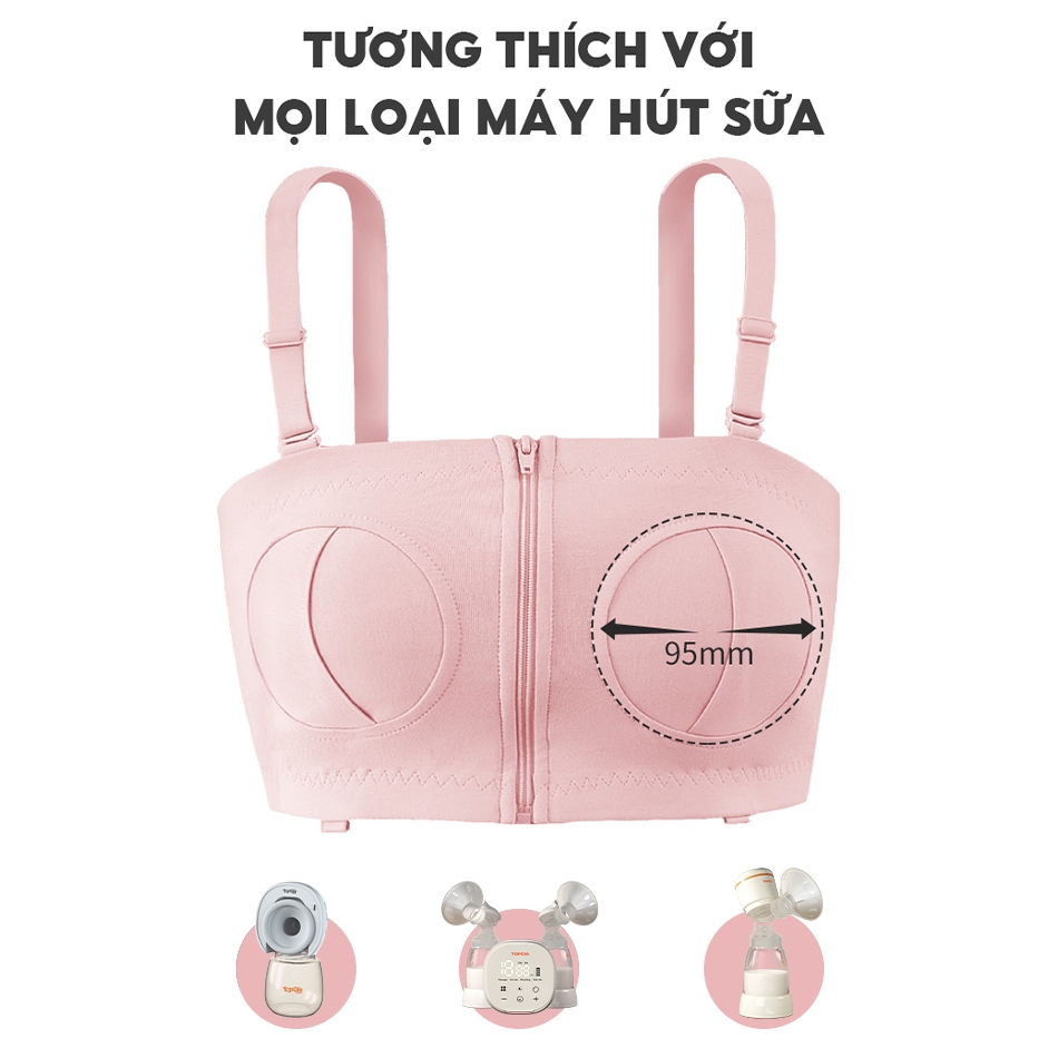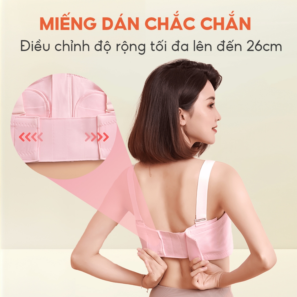 2. Kéo khóa phía trước và điều chỉnh dây đeo áo hút sữa. Mẹ có thể sử dụng thêm tấm tăng chiều rộng dự phòng giữa hai bầu ngực theo nhu cầu cơ thể