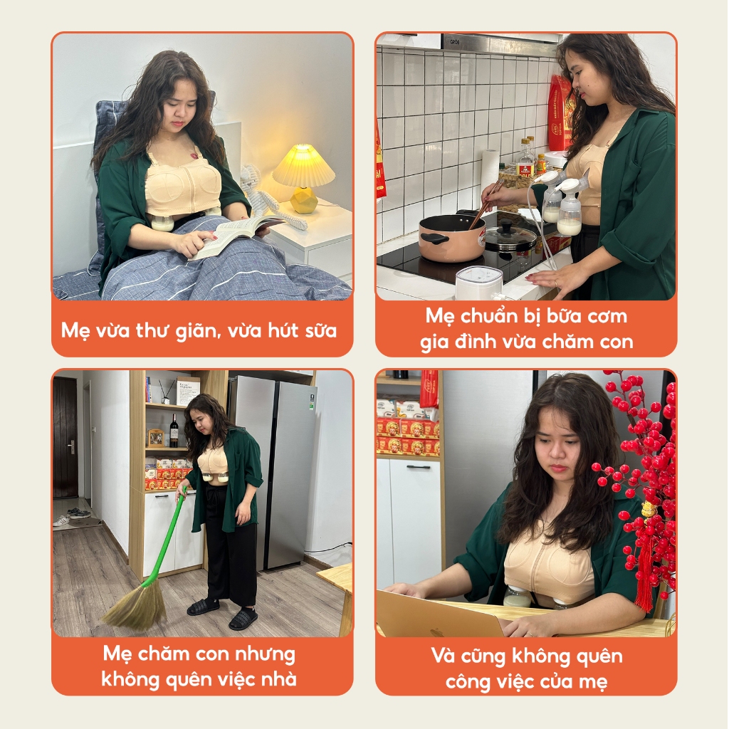 - Áo hút sữa rảnh tay có dây đeo điều chỉnh hoặc tháo rời được, giúp áo có thể chịu được trọng lượng lên đến 1 kg mà mẹ vẫn cảm thấy cực kì thoải mái. Đặc biệt, trên miệng áo giữ phễu được thiết kế tinh tế với 04 lớp bao bọc giúp giữ phễu hút sữa và bình sữa được chắc chắn.