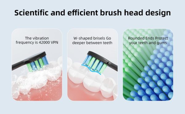 – Cảm biến áp lực với đèn báo hiệu cảnh báo khi bàn dùng lực chải quá mạnh