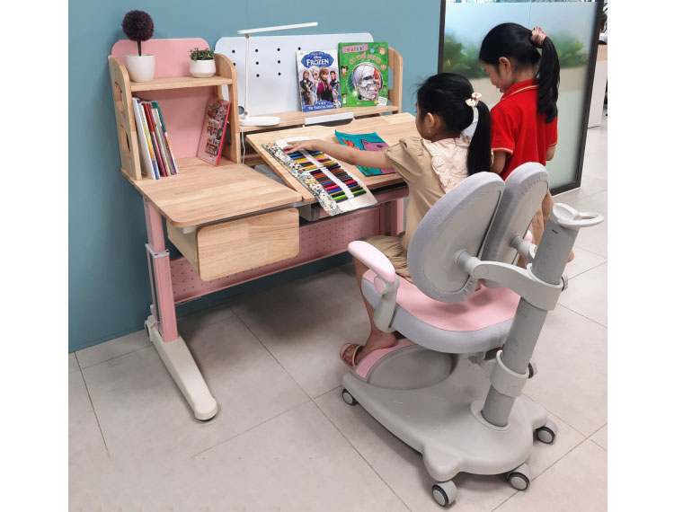 - Chống gù: Điều chỉnh độ cao: Bàn và ghế có thể điều chỉnh độ cao để phù hợp với chiều cao của trẻ, giúp duy trì tư thế ngồi đúng và ngăn ngừa gù lưng. Mặt bàn nghiêng: Mặt bàn có thể nghiêng ở nhiều góc độ khác nhau (0-40 độ) để hỗ trợ các hoạt động học tập như đọc sách, viết, và vẽ.