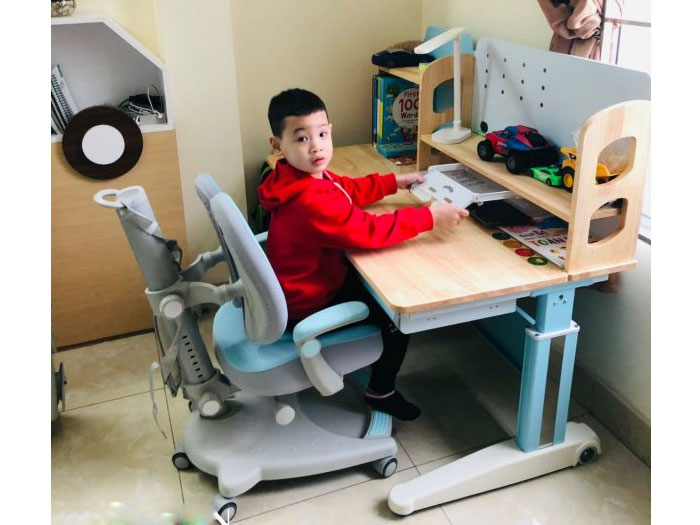 Giá để ipad tích hợp điều chỉnh độ nghiêng lên tới 90 độ, đảm bảo tư thế ngồi, khoảng cách nhìn đạt chuẩn từ mắt tới màn hình, giúp con tránh được các tật về mắt.