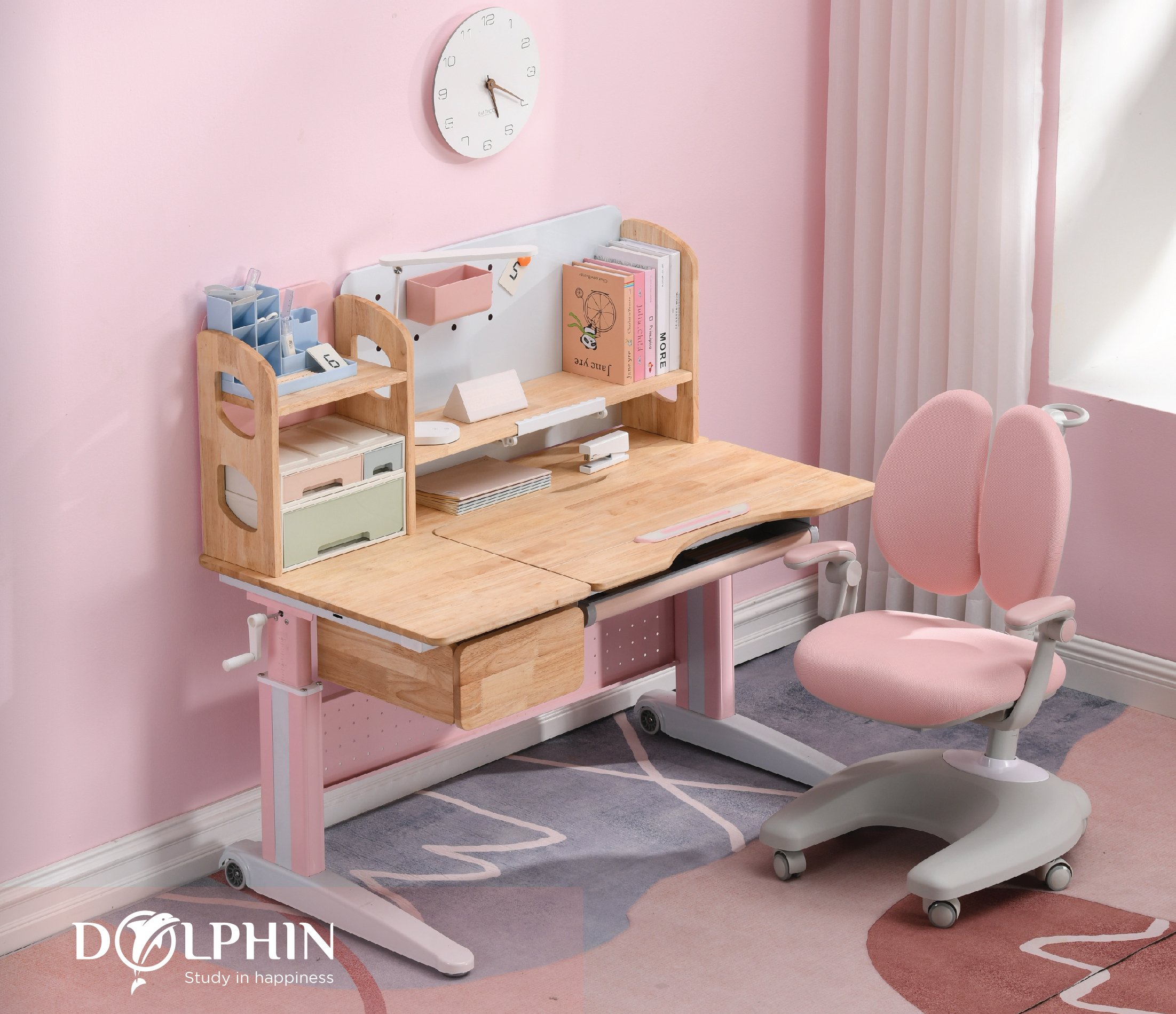 Bàn học thông minh Dolphin có thể thay đổi chiều cao linh hoạt từ 55 - 75 cm cho phù hợp với mọi lứa tuổi từ 3 tuổi đến khi trưởng thành.