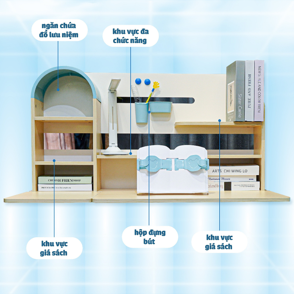 Bàn học S110 là sản phẩm được cải tiến trong việc mở rộng phạm vi hoạt động của bé với bề rộng lên tới 1,1m.