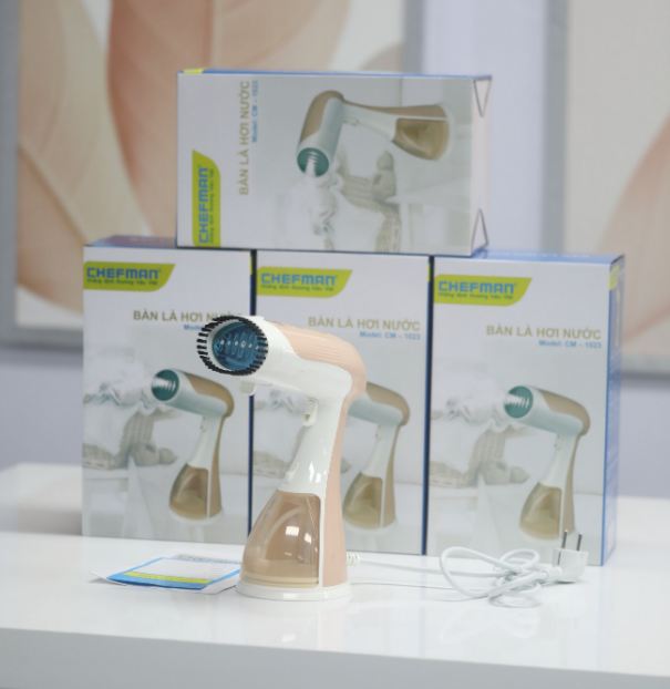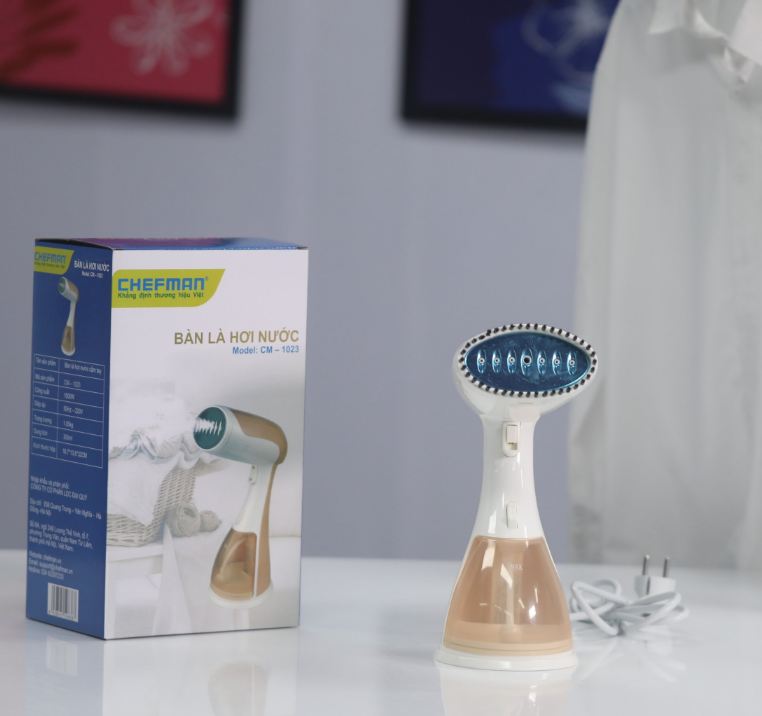 - Bàn là, bàn ủi hơi nước Chefman 1023 dễ dàng ủi bay mọi vết nhăn, hơi nước được phun tỏa đều ra thấm đều và làm ẩm làm mịn từng sợi vải, giúp việc là ủi thẳng các vết nhăn trên quần áo mà không làm ướt quần áo một cách dễ dàng hơn