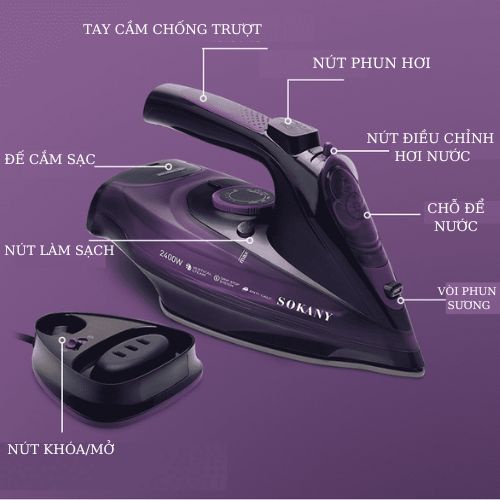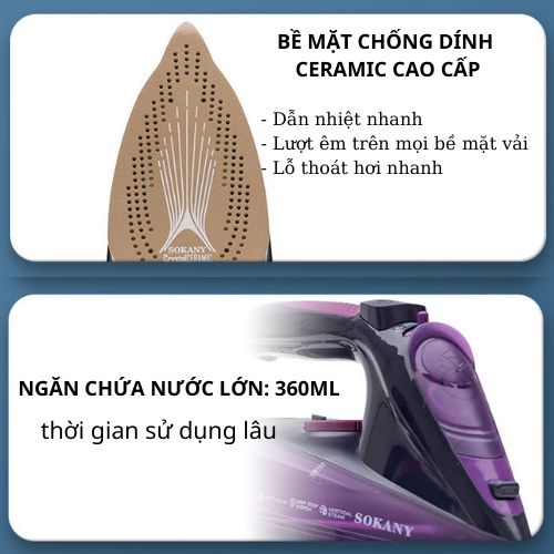 Bàn là hơi nước không dây Sokany 2085, Thiết kế hiện đại, Bảo hành 12 tháng