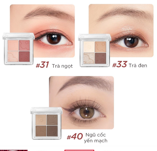 Chất phấn mịn mượt, hạt nhỏ dễ tán, bám tốt trên da mà không gây vón hay rơi phấn. Khi thoa lên mí mắt, phấn dễ dàng hòa quyện, tạo hiệu ứng chuyển màu tự nhiên và mượt mà. Các tông màu được thiết kế theo bảng màu hiện đại, giúp bạn dễ dàng phối hợp để tạo điểm nhấn và chiều sâu cho đôi mắt.