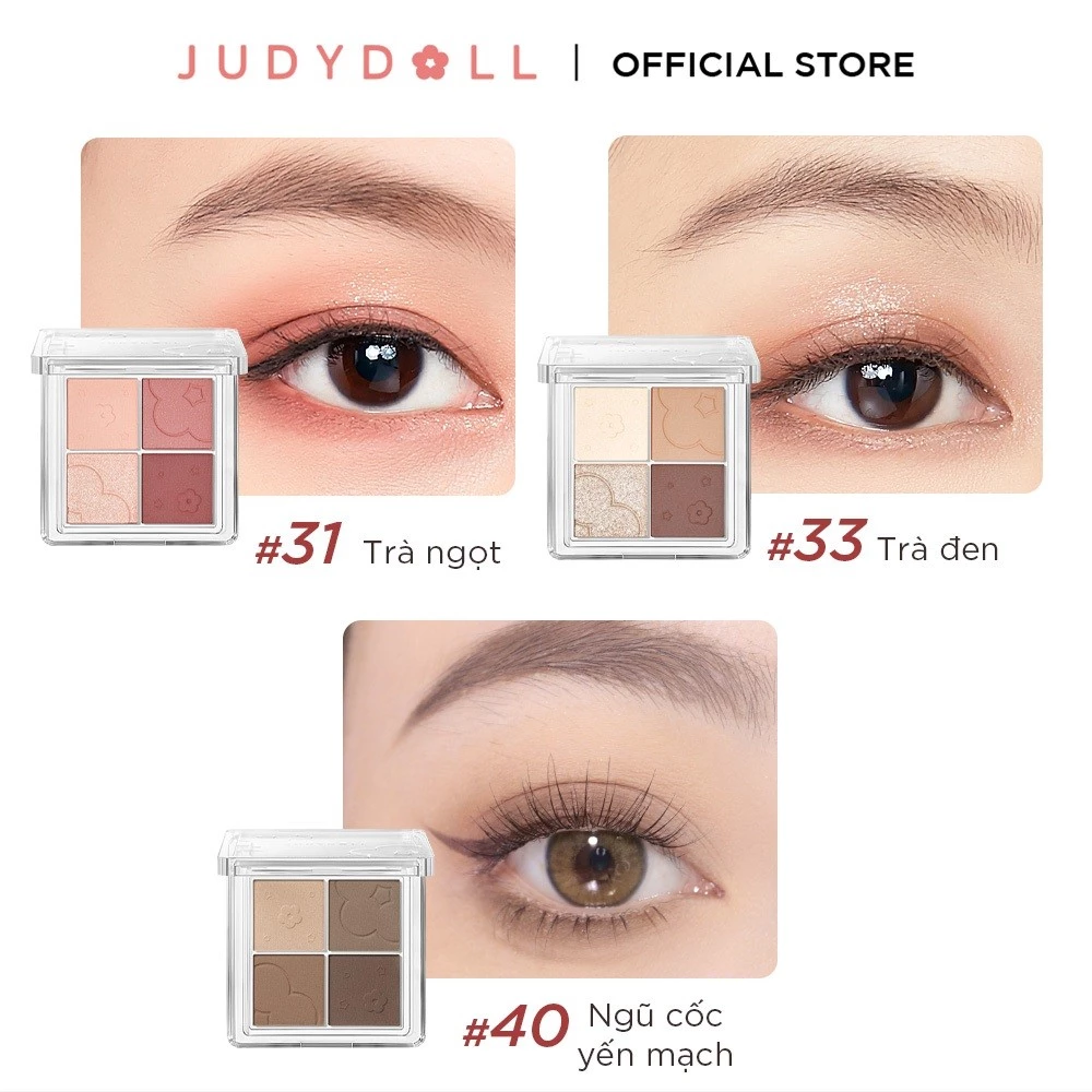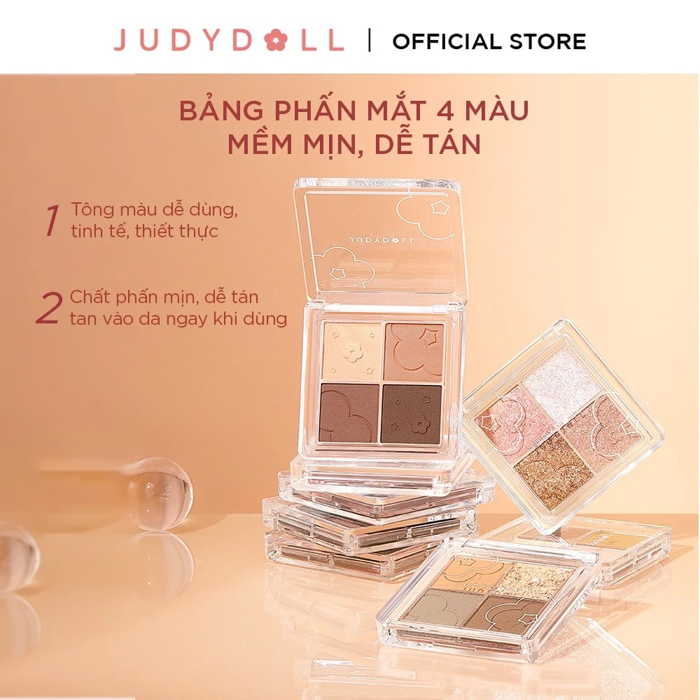 Dòng phấn mắt Judydoll nổi tiếng với khả năng lên màu chuẩn chỉ sau một lần tán, bền màu suốt nhiều giờ mà không bị lem hay phai. Dù bạn yêu thích phong cách trang điểm nhẹ nhàng hàng ngày hay kiểu makeup sắc nét dự tiệc, bảng phấn 4 màu nhỏ gọn này đều đáp ứng hoàn hảo.