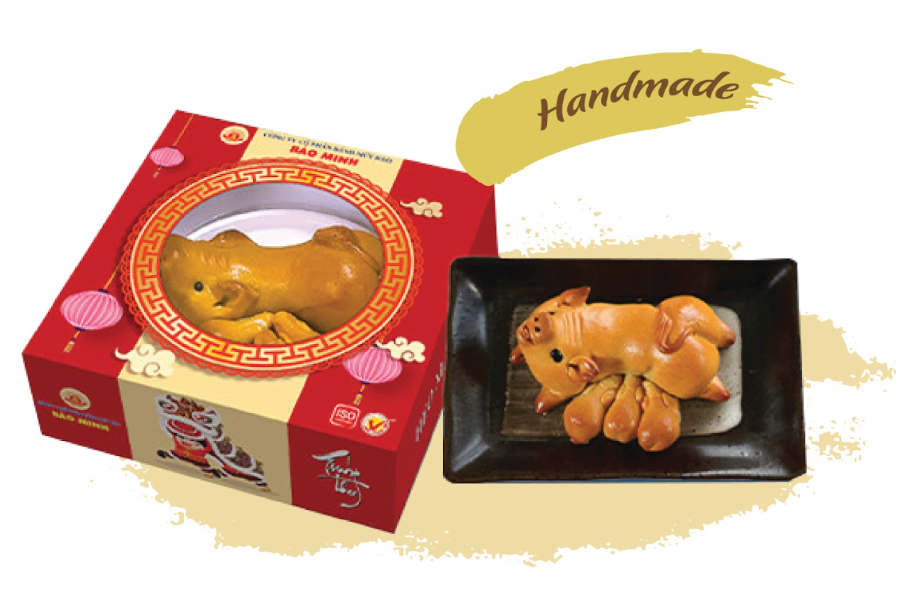 3. Quy trình sản xuất thủ công – Tỉ mỉ trong từng chi tiết Một trong những điểm nổi bật làm nên giá trị của sản phẩm chính là quy trình làm bánh thủ công (Handmade). Những nghệ nhân lành nghề của Bảo Minh đã dồn hết tâm huyết để nặn, tạo hình từng chi tiết, từ đôi mắt long lanh của heo mẹ cho đến những chú heo con xinh xắn.