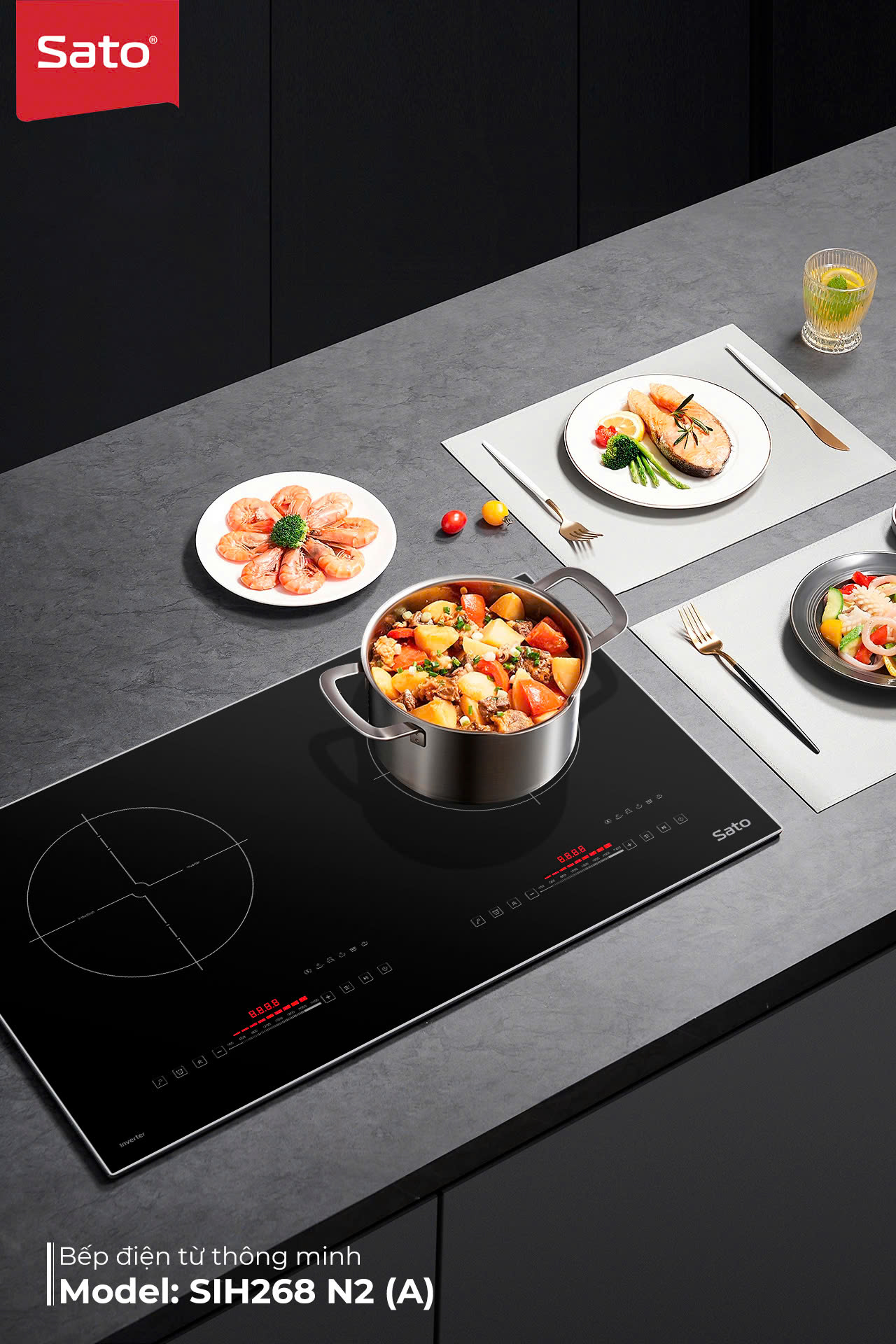 Bếp đôi Sato SIH368 N3 (B), khả năng nấu đa năng, thiết kế hiện đại, bền bỉ
