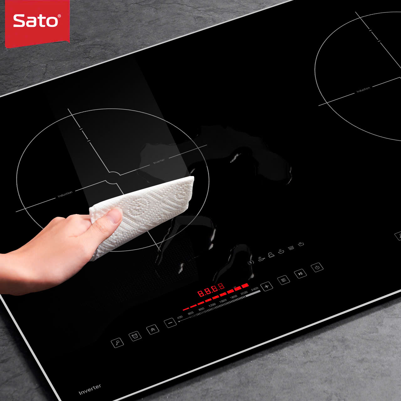 Hai vùng nấu độc lập: Công suất 2400W mỗi vùng.