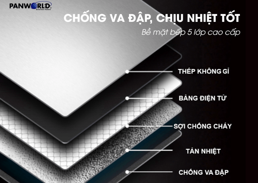Chống va đập, chịu nhiệt tốt nhờ mặt bếp cấu tạo 5 lớp cao cấp: