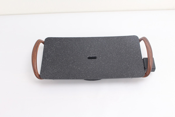Bếp được thiết kế đơn giản với tấm nướng đặt trên 2 tay cầm với 4 chân đế vững chãi có lót silicon chống trượt, tối ưu công năng, mỏng nhẹ và gọn gàng, không có nhiều khe kẽ nên rất dễ vệ sinh. Với thiết kế đơn giản này cùng với dây điện tháo rời, người sử dụng rất thuận tiện bảo quản hay mang đi trong các cuộc dã ngoại, picnic.
