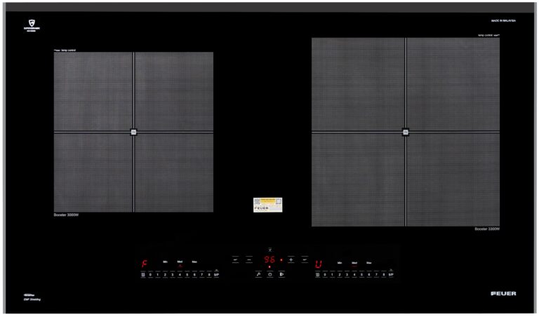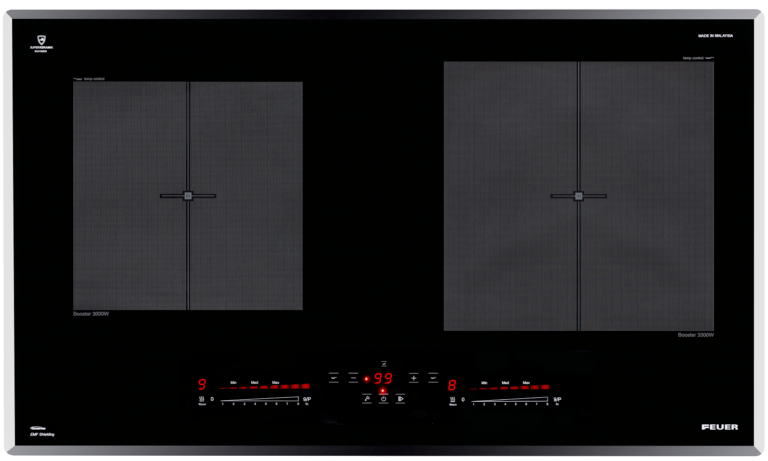 - Thiết kế độc đáo: Mặt kính cường lực Vitroceramic vát cạnh dưới 12mm mang đến sự nổi bật và sang trọng cho bếp FEUER, giúp dễ dàng lau chùi trong quá trình sử dụng