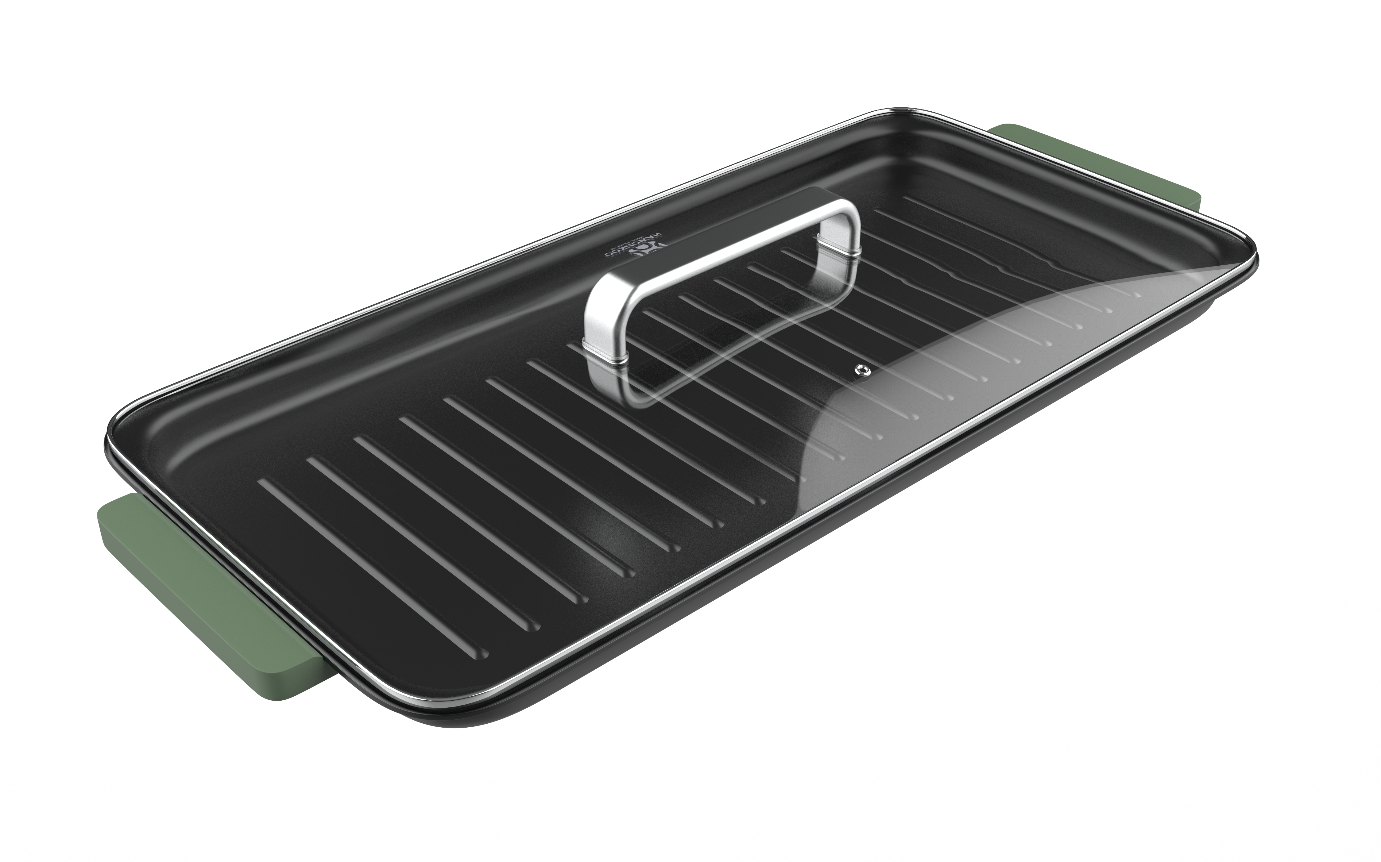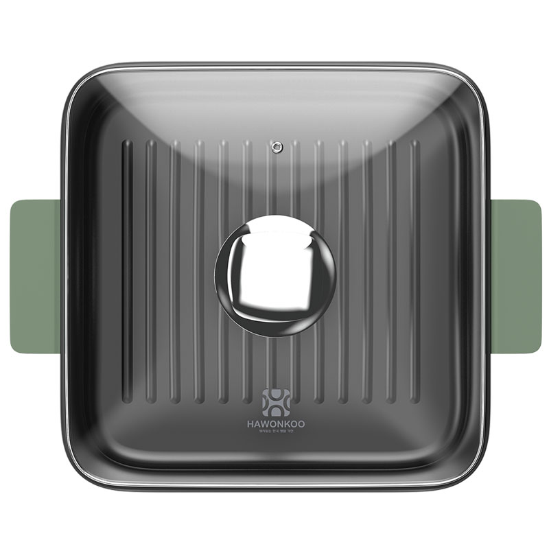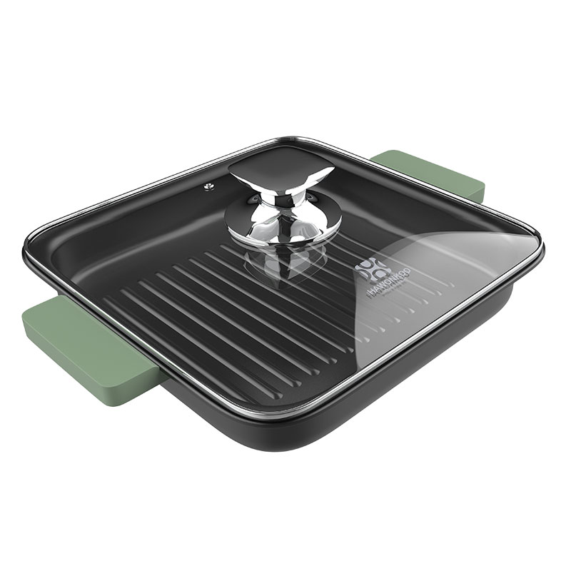 Chất liệu thép, bên trong đáy được dập các gân nổi và được phủ chất chống dính Ceramic không độc hại, không bong tróc trong quá trình sử dụng, chống cháy, dễ dàng vệ sinh, lau chùi. Tay cầm bằng cao su chịu nhiệt. Nắp đậy bằng thủy tinh cường lực, chịu được nhiệt độ cao, núm cầm bằng nhôm hợp kim không bắt nhiệt, chống bắn mỡ khi nướng, mép được bọc inox bảo vệ tạo độ thẩm mỹ, hạn chế va đập rất tiện khi sử dụng.
