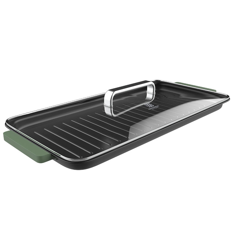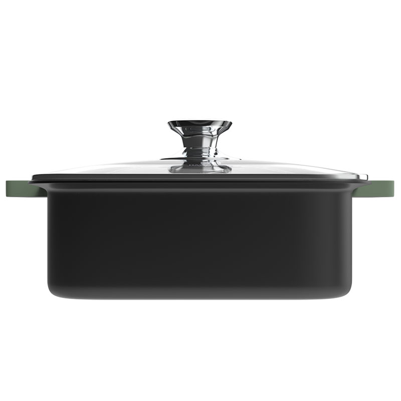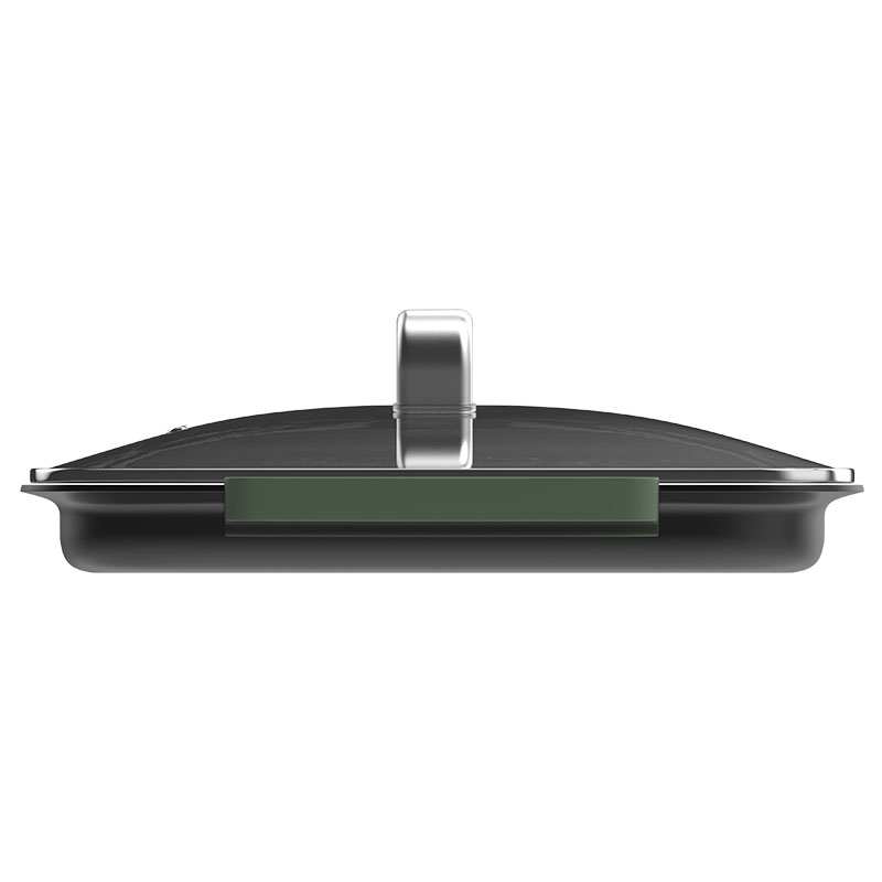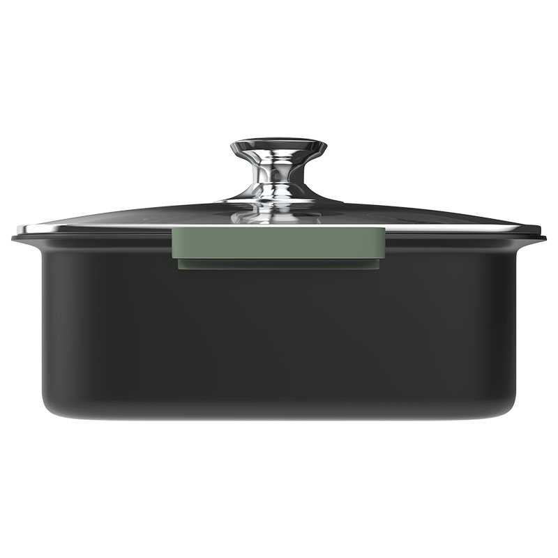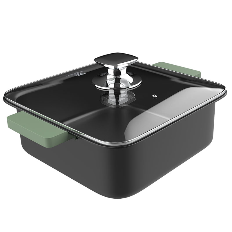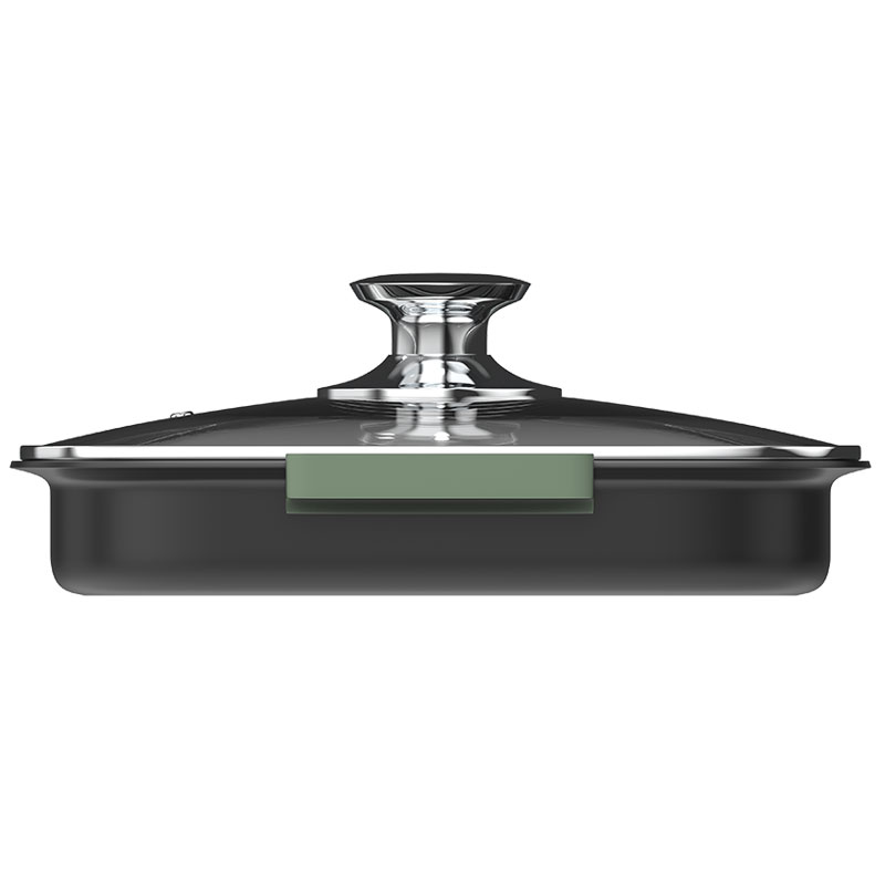 Chất liệu nhôm truyền nhiệt nhanh, bên dưới đáy được gắn một lớp thép từ tính bắt từ, bên trong được phủ chất chống dính Ceramic không độc hại, không bong tróc trong quá trình sử dụng, chống cháy, dễ dàng vệ sinh, lau chùi. Tay cầm bằng cao su chịu nhiệt. Nắp đậy bằng thủy tinh cường lực, chịu được nhiệt độ cao, núm cầm bằng inox không bắt nhiệt, chống bắn mỡ khi nướng, mép được bọc inox bảo vệ tạo độ thẩm mỹ, hạn chế va đập rất tiện khi sử dụng.