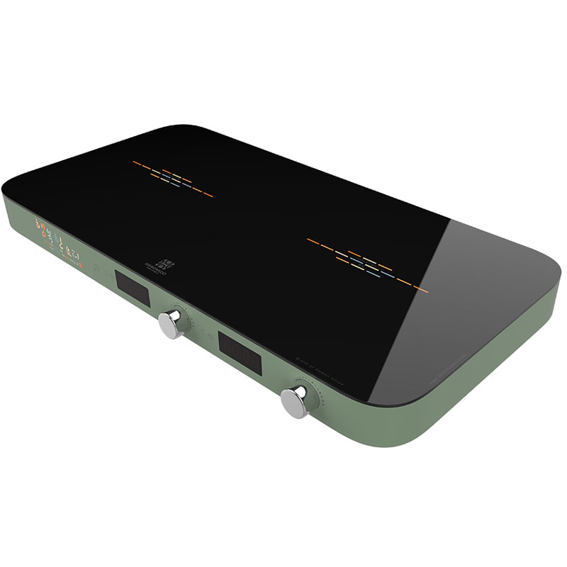 Sử dụng dây đồng nguyên chất+6 thanh hướng từ Mâm từ sử dụng đồng nguyên chất với 17 vòng dây kép, được phủ lớp emay cách điện tiêu chuẩn Châu Âu kết hợp với 6 thanh hướng từ tích được xếp chéo hình cánh quạt hợp ngay trên mâm từ giúp khả năng gia nhiệt nhanh, tỏa nhiệt đều