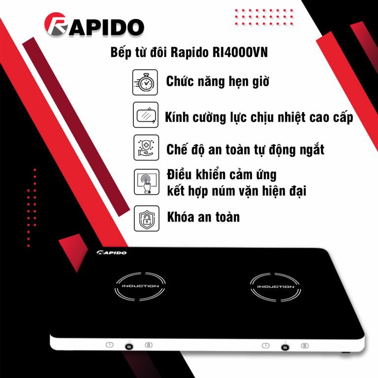- 2 vùng bếp nấu công suất 2000W + 2000W