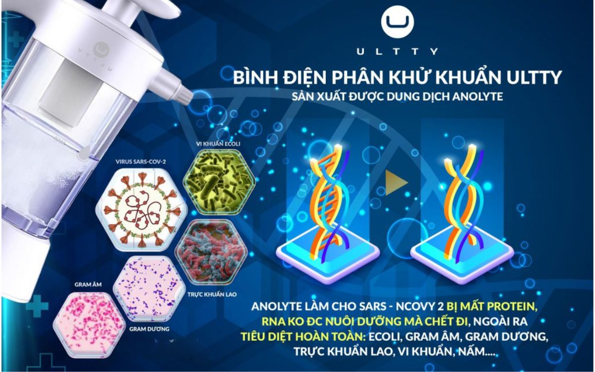 Bình Ultty điện phân ra dung dịch Anolyte - Được Bộ Quốc Phòng, Bộ Y Tế sử dụng rộng rãi trong phòng chống dịch Covid-19