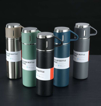 Bình Giữ Nhiệt kèm 2 Ly Vacum Flask 500ml Inox Cao, Màu ngẫu nhiên Cấp