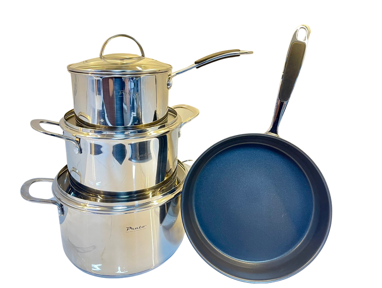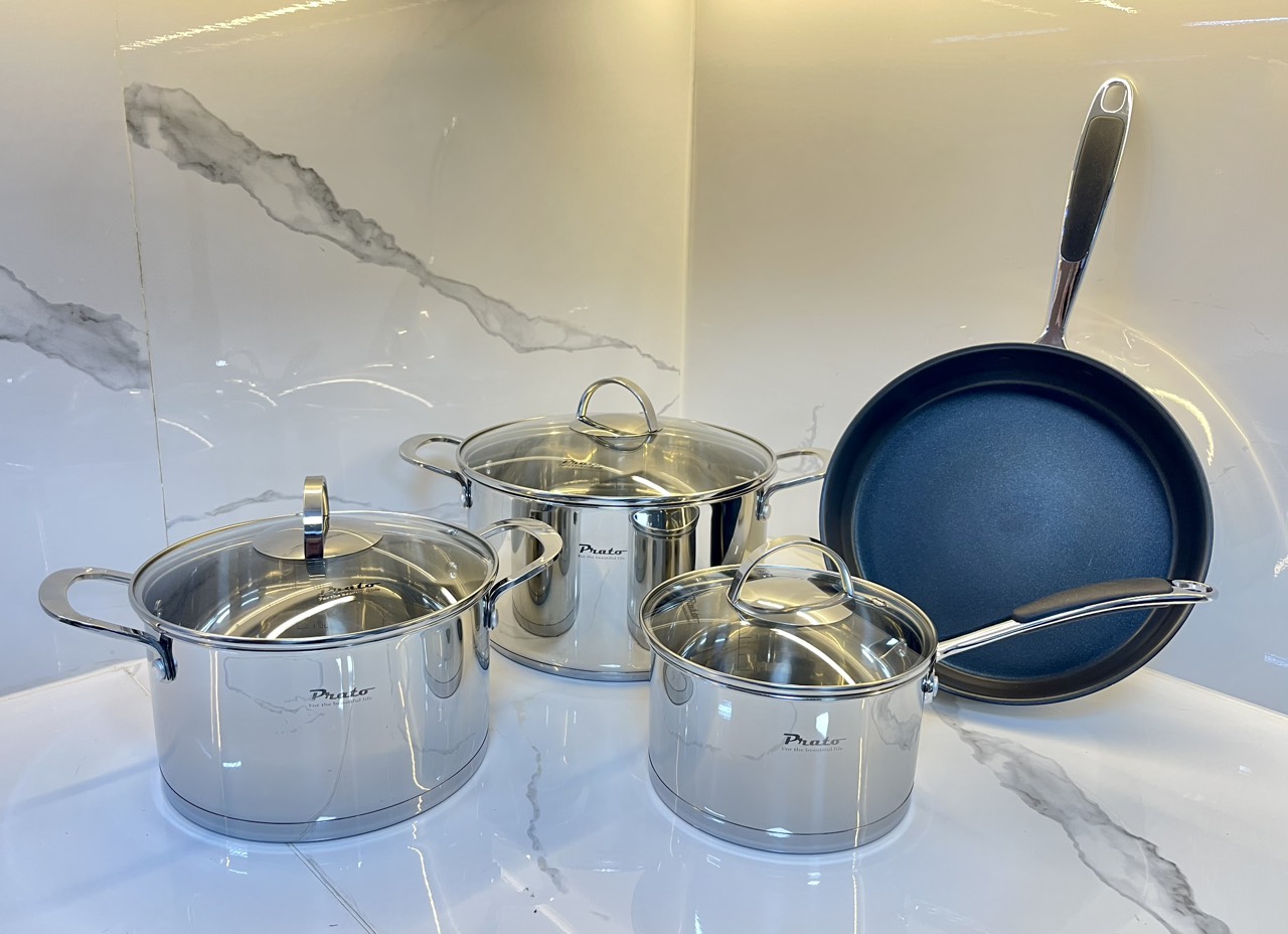 Bộ 3 Nồi + 1 Chảo Prato GOLDEN với cấu trúc 5 đáy hiện đại giúp truyền và giữ nhiệt tối ưu, tiết kiệm năng lượng, kết hợp với kiểu dáng đáy thẳng sang trọng tăng tiết diện, là sự lựa chọn hoàn hảo cho trải nghiệm nấu ăn hiệu quả và đẳng cấp trên mọi bếp.