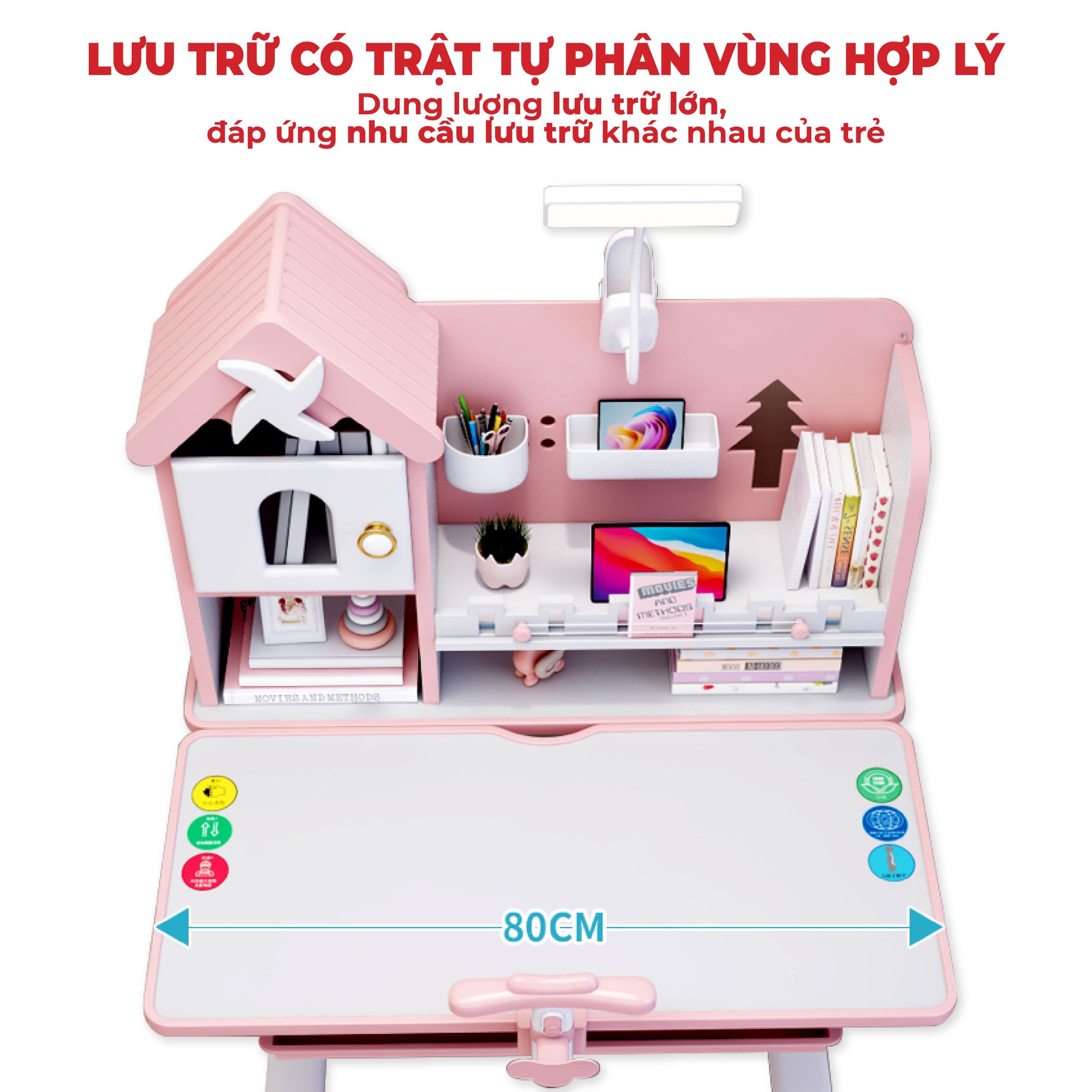 - Kệ sách rộng, có thiết kế hình ngôi nhà, ngăn bàn di động.
