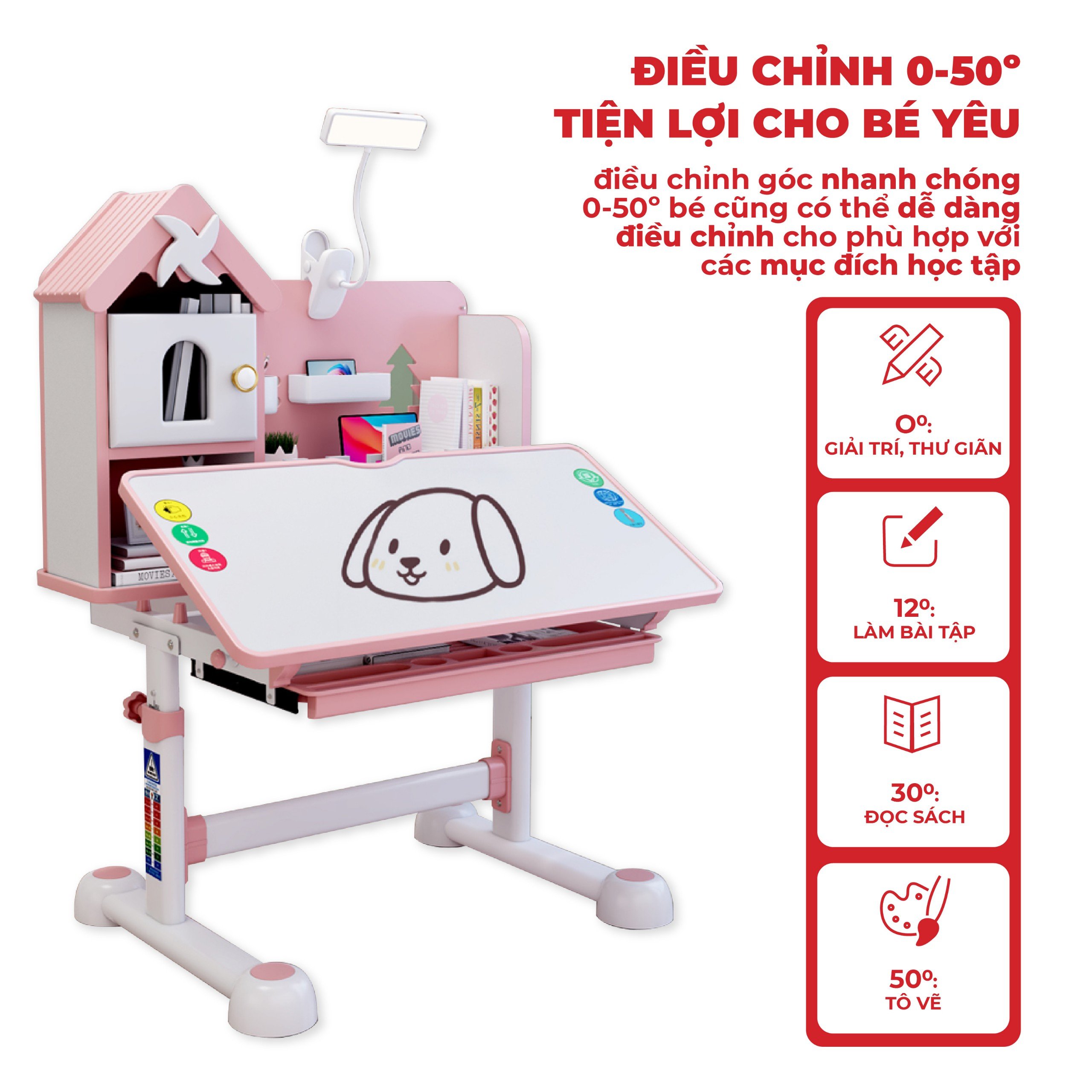 - Bé dễ dàng điều chỉnh mặt bàn 0-50 độ phụ vụ cho các mục đích học tập khác nhau.