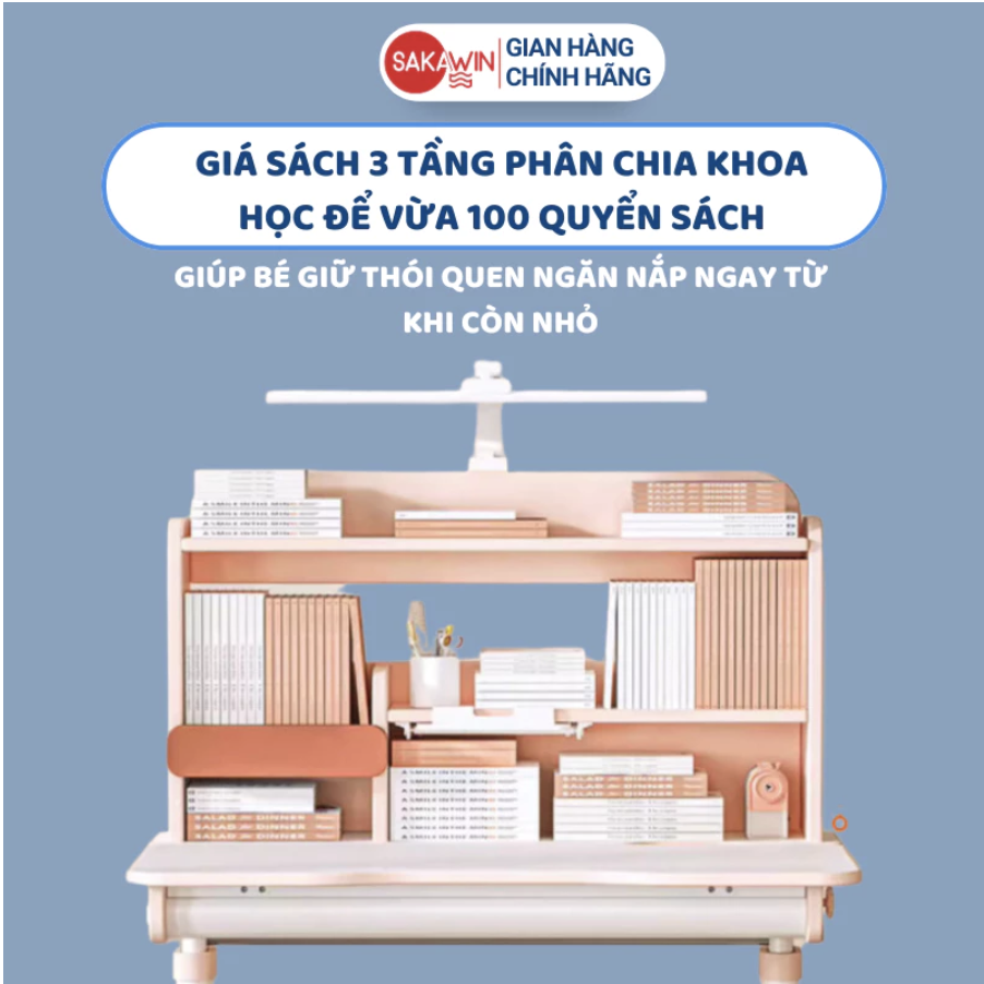 – Giá sách nâng cấp lớn hơn 30% các mã trên thị trường bé có thêm không gian lưu trữ đồ dùng học tập.
