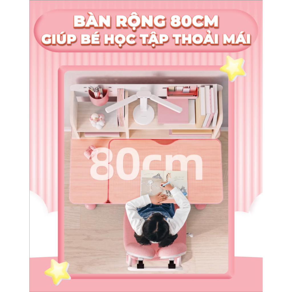 - Bàn học phủ lớp chống loá, chống phản quang, mắt của trẻ sẽ không bị mờ, bị mỏi khi học lâu dưới ánh đèn