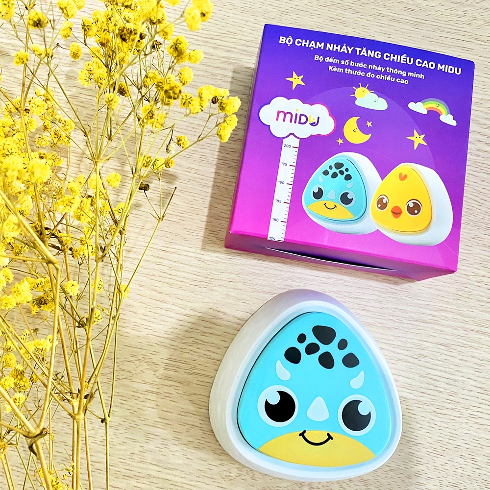 * Bộ chạm nhảy tăng chiều cao Midu dựa theo nguyên lý hoạt động nhảy với tay của bóng rổ, giúp kích thích tăng trưởng chiều cao, tập thể dục đốt cháy calo. Máy giúp bé nhỏ tập đếm tiếng Việt. Đặc biệt có lợi ích với giai đoạn phát triển chiều cao của trẻ (trước 6 tuổi và giai đoạn dậy thì trẻ tăng chiều cao rất nhanh).