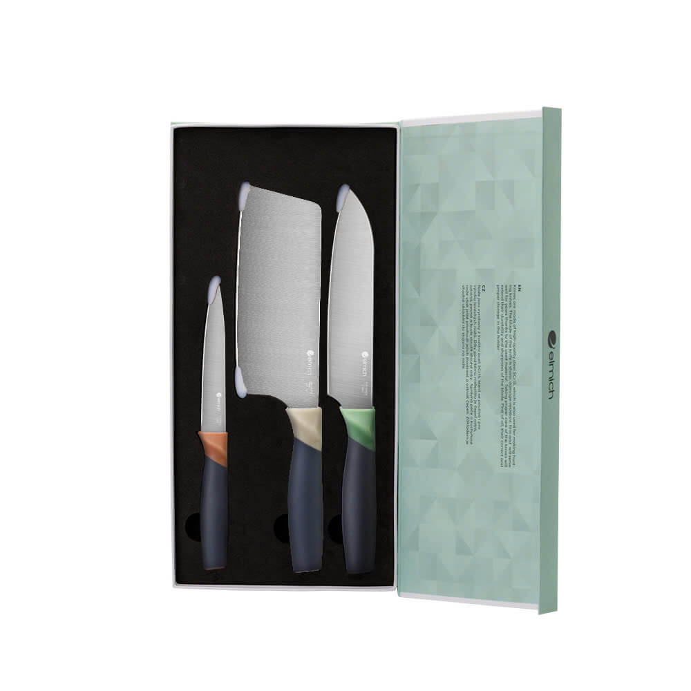 | Số lượng | Bộ dao gồm 3 món: Dao nhà bếp đa năng, dao thái, dao gọt | |