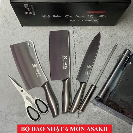 Bộ dao kéo Nhật inox 6 món đúc nguyên khối cao cấp sử dụng cho nhà bếp, kháng khuẩn tốt