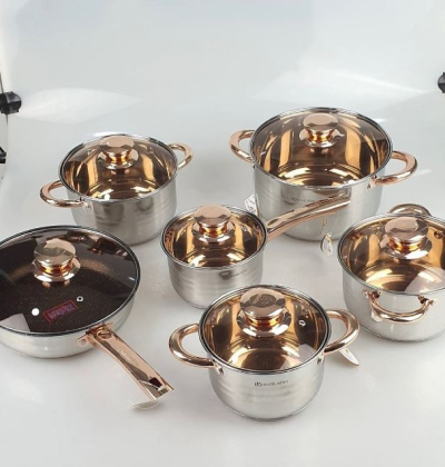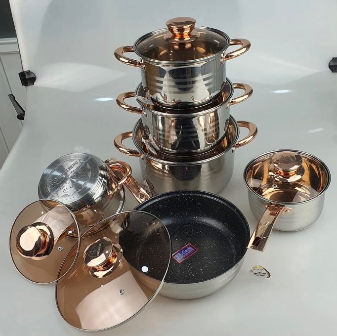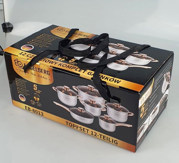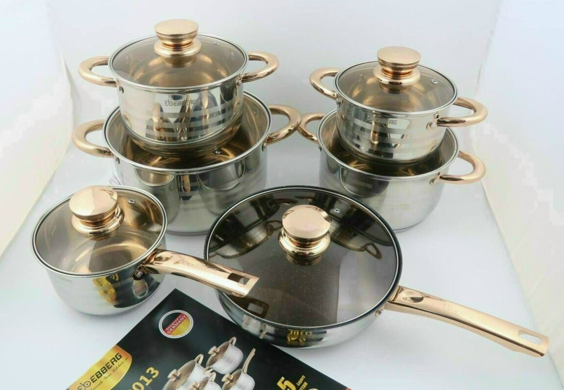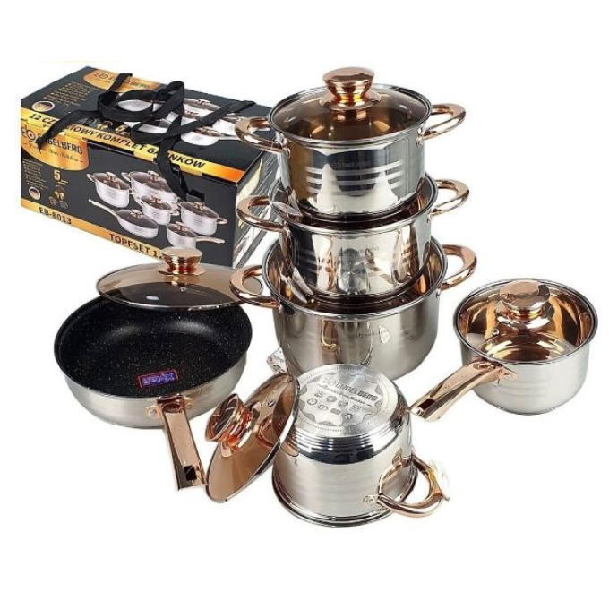 Bộ Nồi Đức 6 Món Vung Kính ENGELBERG EB8013, chất liệu Inox 304, 5 đáy. Bảo hành 12 tháng