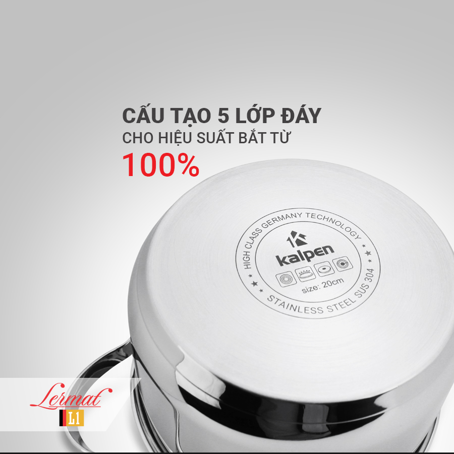 Để việc nấu nướng trở nên dễ dàng, tiết kiệm thời gian, một bộ nồi Inox chất lượng là một yếu tố quan trọng không thể thiếu trong nhà căn bếp của bạn. Và bộ nồi Inox 5 đáy cao cấp Kalpen đến từ thương hiệu của Đức chính là một lựa chọn đáng cân nhắc. Nếu bạn đang tìm kiếm một bộ nồi đa năng, dễ sử dụng và bền bỉ, an toàn cho sức khoẻ thì đây là lựa chọn tuyệt vời cho gia đình của bạn. Không chỉ mang lại hiệu quả bắt từ tốt nhất với 5 lớp đáy, bộ nồi Inox Kalpen còn làm từ vật liệu Inox 304 an toàn cho người dùng. Hãy cùng Kalpen tìm hiểu các tính năng nổi bật của bộ nồi Inox Lermat L1 bên dưới.