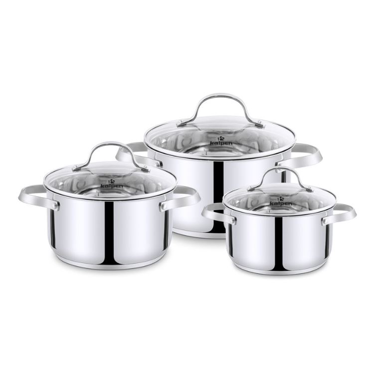 Bộ nồi inox kalpen gồm 3 chiếc với kích thước khác nhau để đáp ứng tốt nhất mọi nhu cầu nấu nướng của bạn.