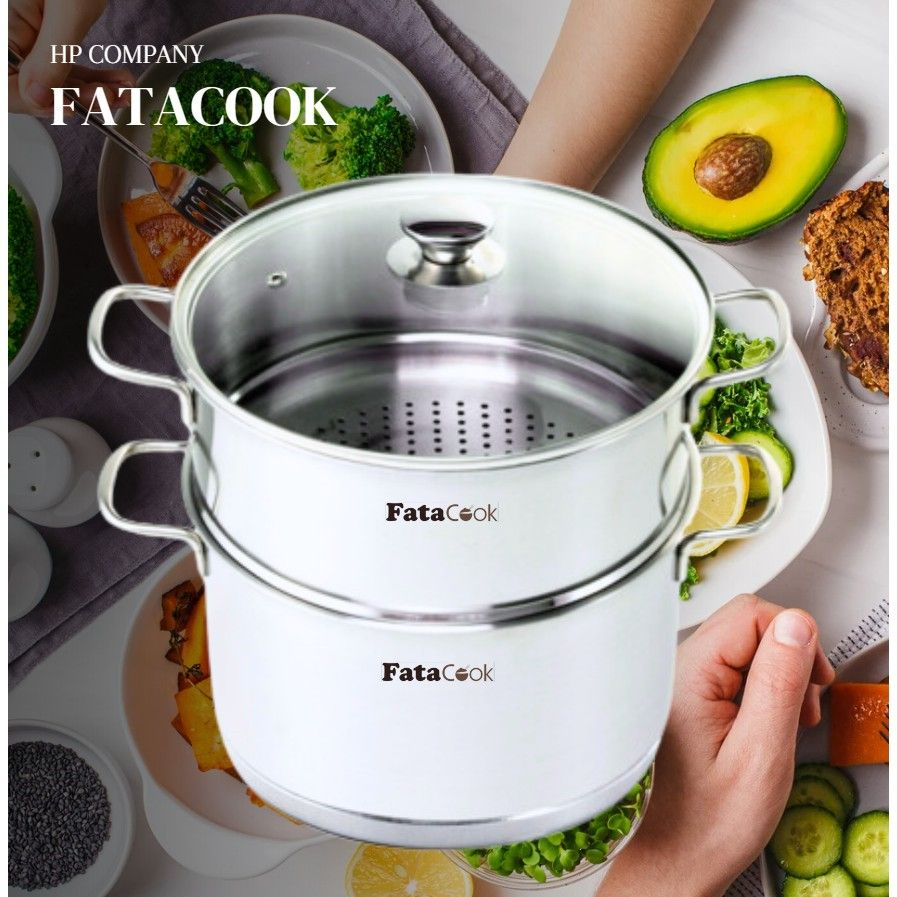 Bộ nồi và xửng hấp inox 3 đáy FataCook NX3DK28 - Giữ nhiệt tốt, tỏa nhiệt đều