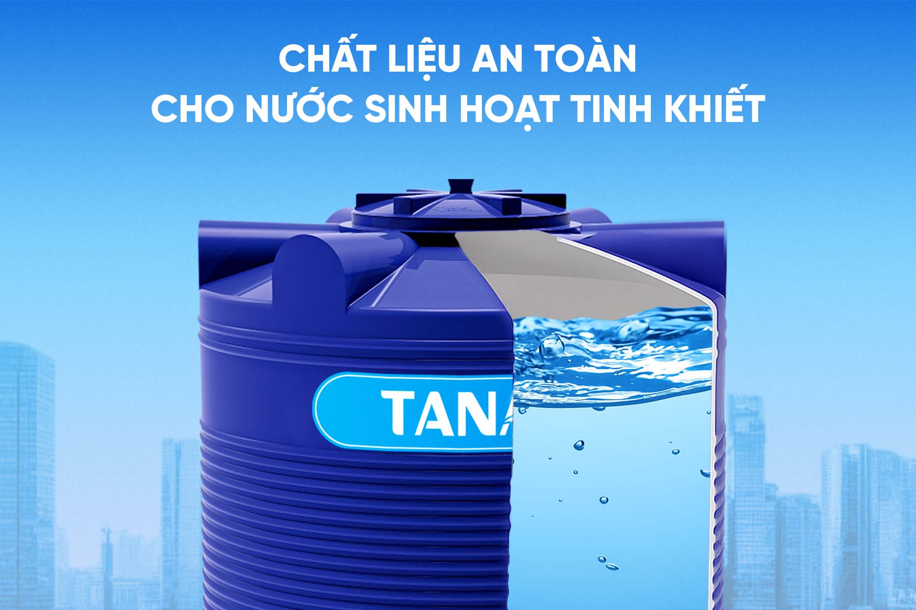 Đặc điểm nổi bật: Nhựa nguyên sinh LLDPE cao cấp đạt chuẩn FDA (Hoa Kỳ), an toàn tuyệt đối cho sức khỏe. Công nghệ sản xuất 3 lớp hiện đại từ Hàn Quốc giúp tối ưu độ bền. Lớp ngoài chống trầy xước, dễ vệ sinh, giữ vẻ ngoài bền đẹp. Lớp giữa chống tia UV ngăn chặn hoàn toàn sự hình thành rong rêu và vi khuẩn. Lớp trong cùng nhựa hạt trắng tinh khiết, bảo vệ nguồn nước sạch cho gia đình.