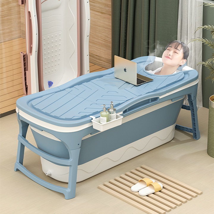 Bồn tắm gấp gọn cho người lớn, gia đình tắm, xông hơi thư giãn chất liệu nhựa PP và Silicon Loại To 143cm - Hàng chính hãng [Bảo Hành 3 năm]