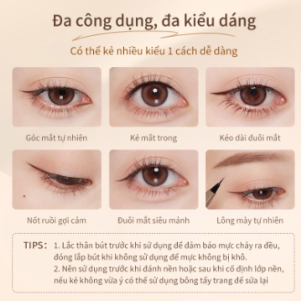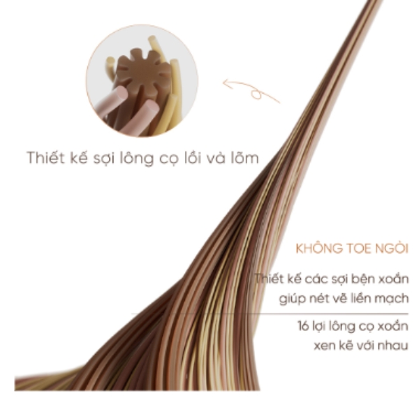 - Đầu cọ siêu mảnh chỉ 0.014mm giúp dễ dàng cho đường kẻ sắc nét, vẽ được mi trên, mi dưới dễ dàng.